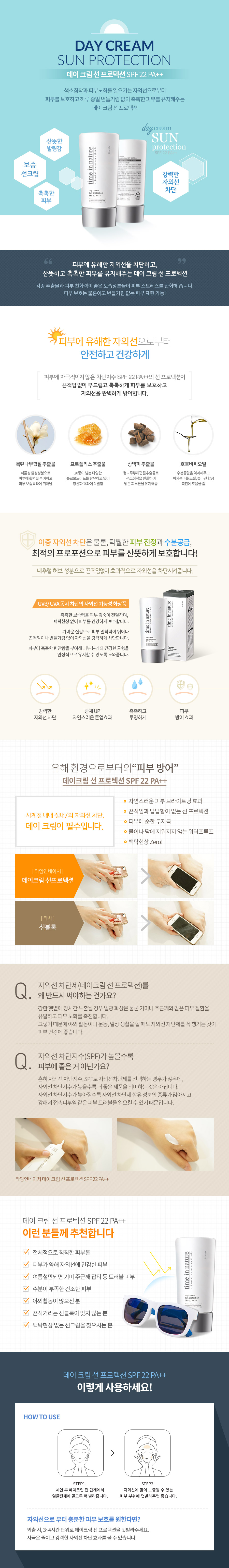 성분 정제수, 에칠헥실메톡시신나메이트, 부틸렌글라이콜, 부틸메톡시디벤조일메탄, 나이아신아마이드, 비즈왁스, 프로필렌글라이콜다이펠라고네이트, 호호바씨오일, 글리세릴스테아레이트, 호호바왁스피이지-120에스터, 다이메티콘, 세테아릴알코올, 폴리솔베이트20, 피이지-100스테아레이트, 알지닌, 카보머, 다이메티콘/비닐다이메티콘크로스폴리머, 1,2-헥산다이올, 목련나무껍질추출물, 흰버드나무껍질추출물, 상백피추출물, 녹차추출물, 왕귤추출물, 프로폴리스추출물, 마트리카리아꽃/잎추출물, 나한백가지추출물, 향료, 리모넨, 리날룰