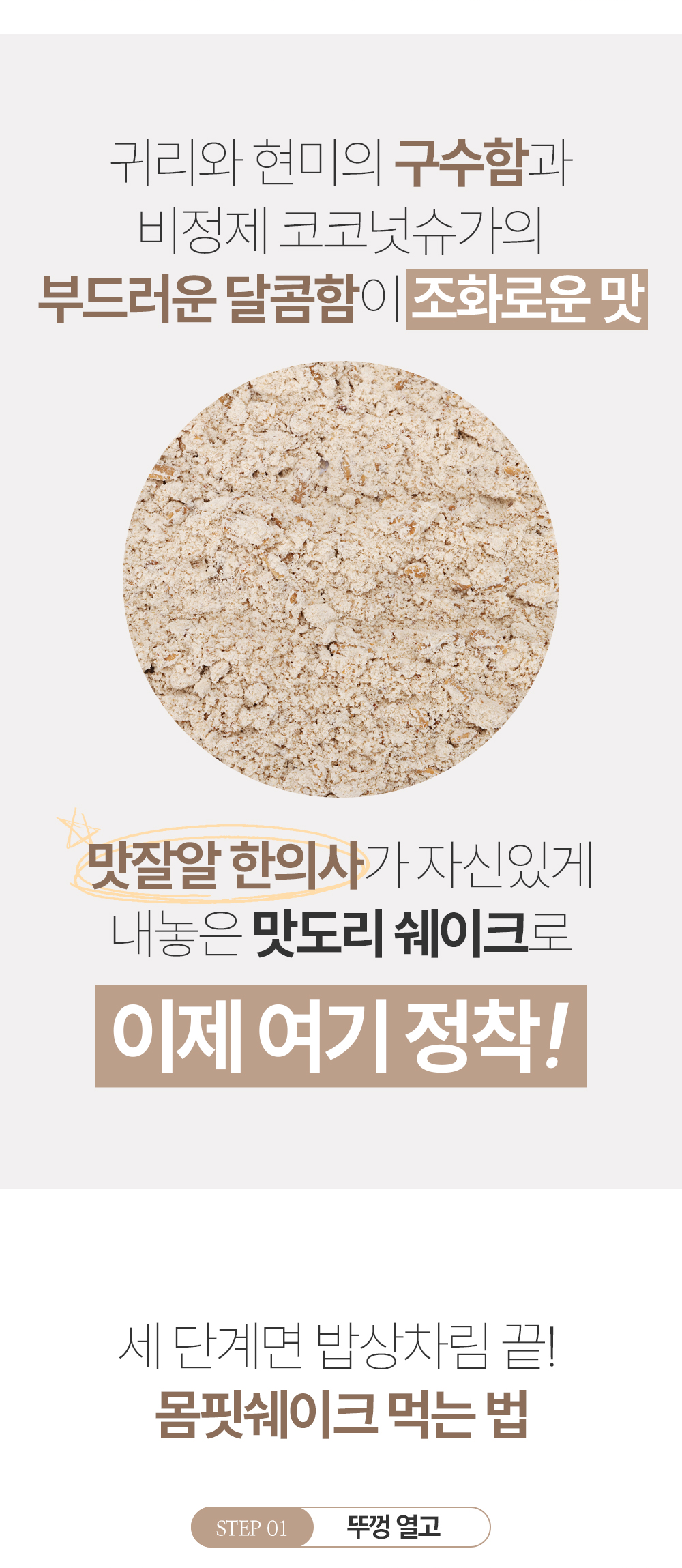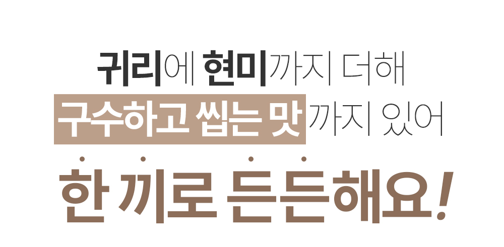 | 성분 | 볶은귀리분말(귀리:미국산), 귀리크리스피(미국산), 볶은현미분말(현미:국산), 코코넛슈가, 비타민미네랄혼밥분말 |